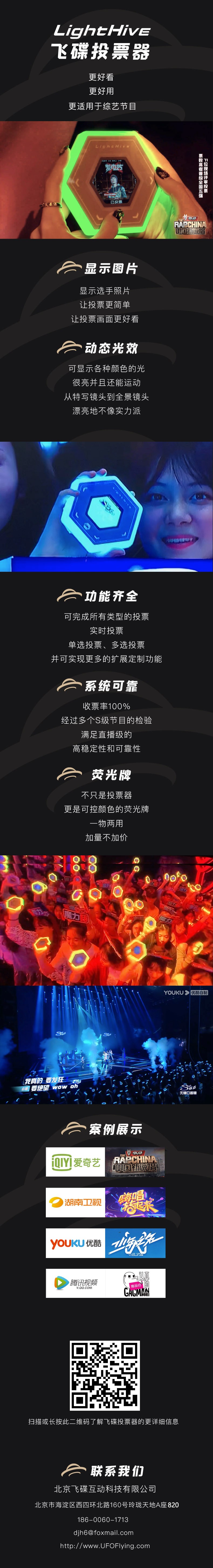 飞碟投票器自问世以来,作为一种崭新的创新型产品,受到了众多节目制作人的青睐,为数个具有广泛影响力的节目添光加彩。同时,飞碟投票器也得到了国家知识产权局的认可,已获得发明专利。